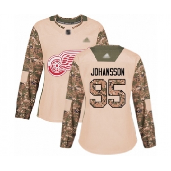 >Women's Detroit Red Wings #95 Albert Johansson Authentic Camo Veterans Day Practice Hockey Jersey