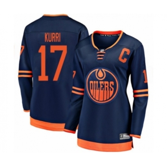 >Women's Edmonton Oilers #17 Jari Kurri Authentic Navy Blue Alternate Fanatics Branded Breakaway Hockey Jersey