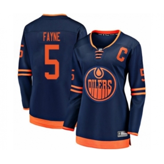 Women's Edmonton Oilers #5 Mark Fayne Authentic Navy Blue Alternate Fanatics Branded Breakaway Hockey Jersey
