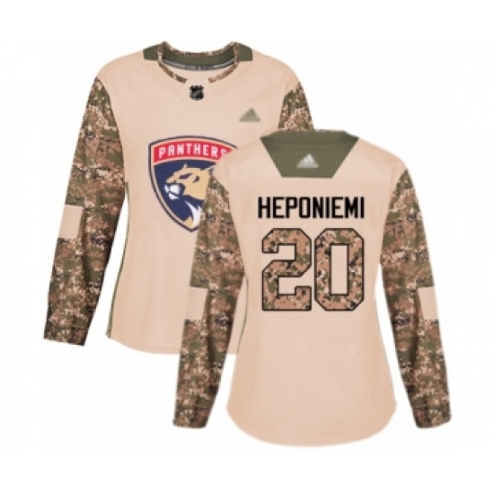 >Women's Florida Panthers #20 Aleksi Heponiemi Authentic Camo Veterans Day Practice Hockey Jersey