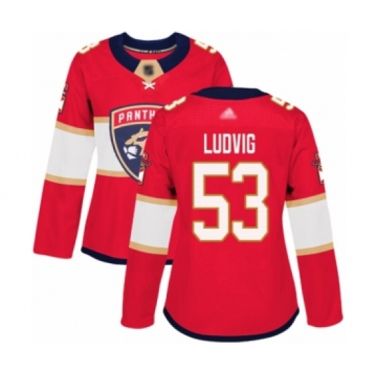 >Women's Florida Panthers #53 John Ludvig Authentic Red Home Hockey Jersey