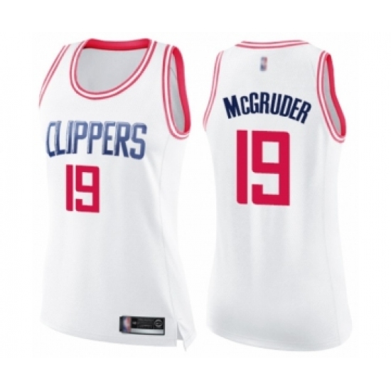 >Women's Los Angeles Clippers #19 Rodney McGruder Swingman White Pink Fashion Basketball Jersey