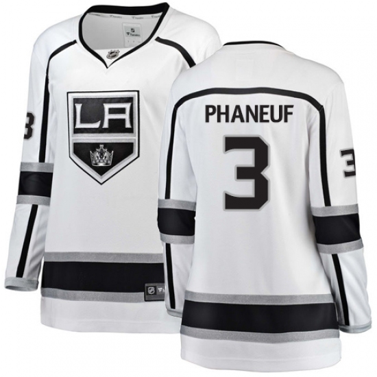 Women's Los Angeles Kings #3 Dion Phaneuf Authentic White Away Fanatics Branded Breakaway NHL Jersey