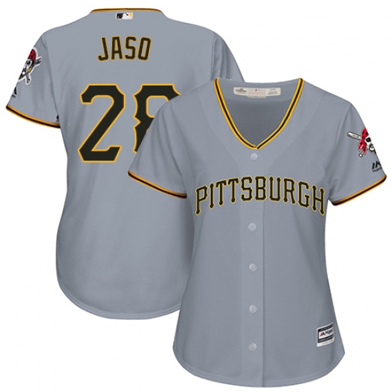 Home>MLB>Pittsburgh Pirates>John Jaso>Women's Majestic Pittsburgh Pirates #28 John Jaso Authentic Grey Road Cool Base MLB Jersey