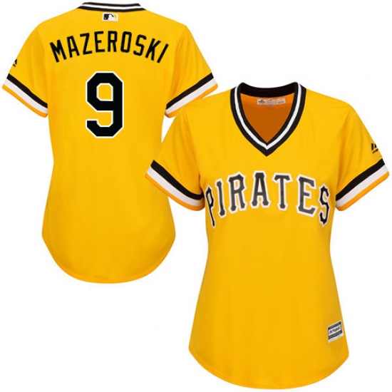 Women's Majestic Pittsburgh Pirates #9 Bill Mazeroski Authentic Gold Alternate Cool Base MLB Jersey