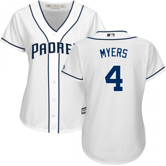 Home>MLB>San Diego Padres>Wil Myers>Women's Majestic San Diego Padres #4 Wil Myers Replica White Home Cool Base MLB Jersey