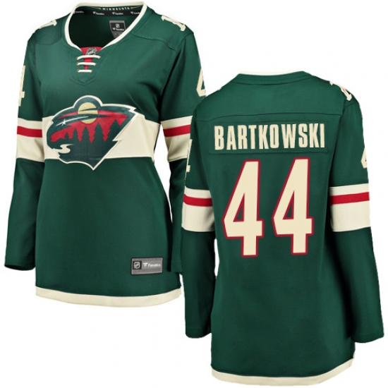 >Women's Minnesota Wild #44 Matt Bartkowski Authentic Green Home Fanatics Branded Breakaway NHL Jersey