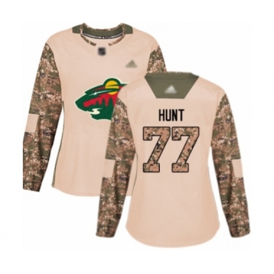 Women's Minnesota Wild #77 Brad Hunt Authentic Camo Veterans Day Practice Hockey Jersey