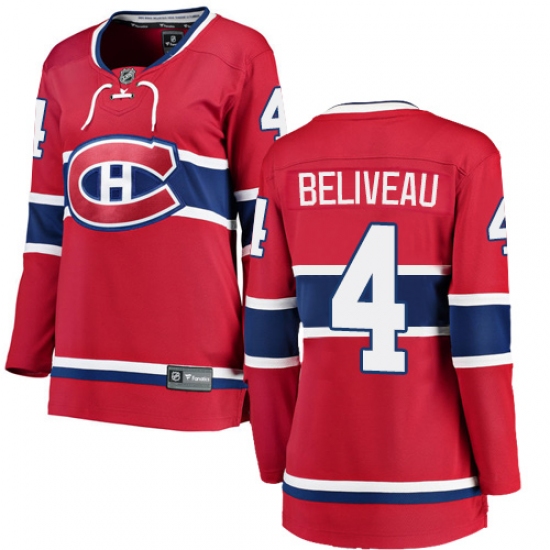 Women's Montreal Canadiens #4 Jean Beliveau Authentic Red Home Fanatics Branded Breakaway NHL Jersey