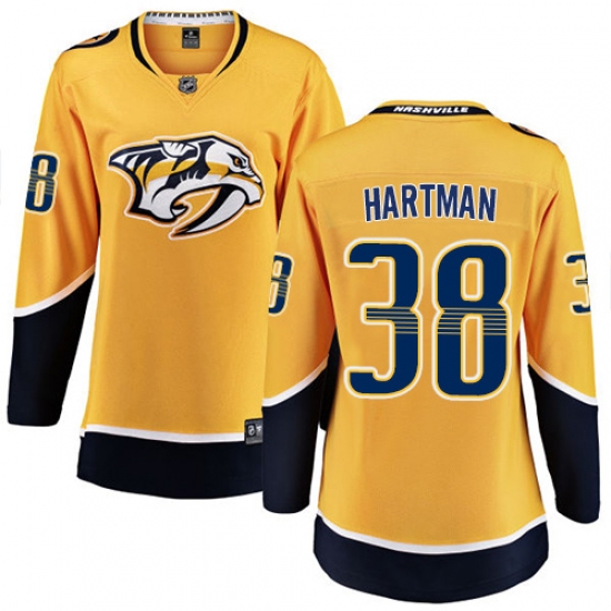 >Women's Nashville Predators #38 Ryan Hartman Fanatics Branded Gold Home Breakaway NHL Jersey