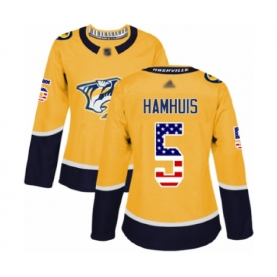 >Women's Nashville Predators #5 Dan Hamhuis Authentic Gold USA Flag Fashion Hockey Jersey
