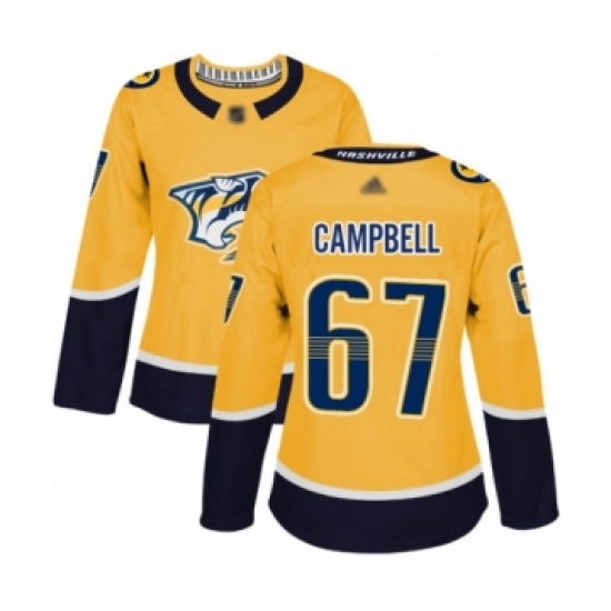 Women's Nashville Predators #67 Alexander Campbell Authentic Gold Home Hockey Jersey