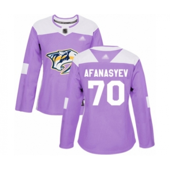 >Women's Nashville Predators #70 Egor Afanasyev Authentic Purple Fights Cancer Practice Hockey Jersey