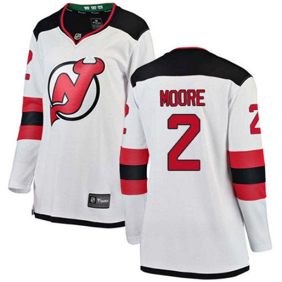 Women's New Jersey Devils #2 John Moore Fanatics Branded White Away Breakaway NHL Jersey