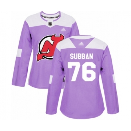 Women's New Jersey Devils #76 P. K. Subban Authentic Purple Fights Cancer Practice Hockey Jersey