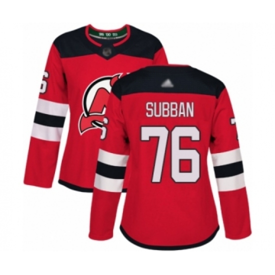 >Women's New Jersey Devils #76 P. K. Subban Authentic Red Home Hockey Jersey