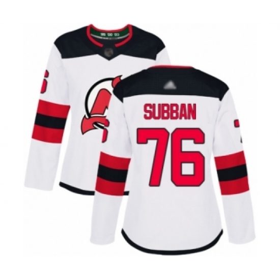 Women's New Jersey Devils #76 P. K. Subban Authentic White Away Hockey Jersey
