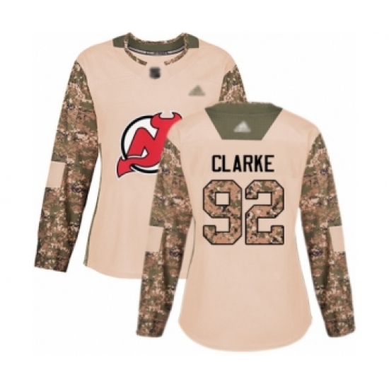 Women's New Jersey Devils #92 Graeme Clarke Authentic Camo Veterans Day Practice Hockey Jersey