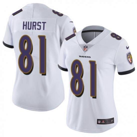 >Women's Nike Baltimore Ravens #81 Hayden Hurst White Vapor Untouchable Limited Player NFL Jersey