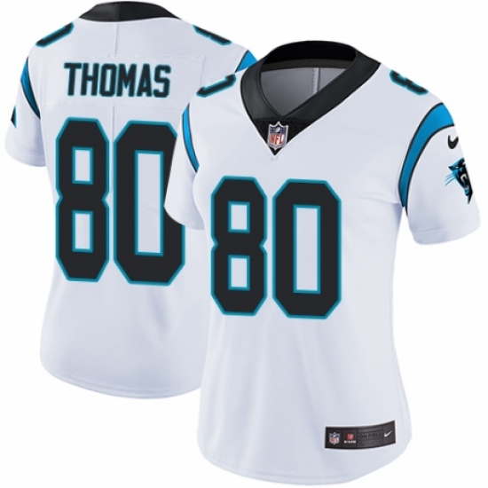 Women's Nike Carolina Panthers #80 Ian Thomas White Vapor Untouchable Limited Player NFL Jersey