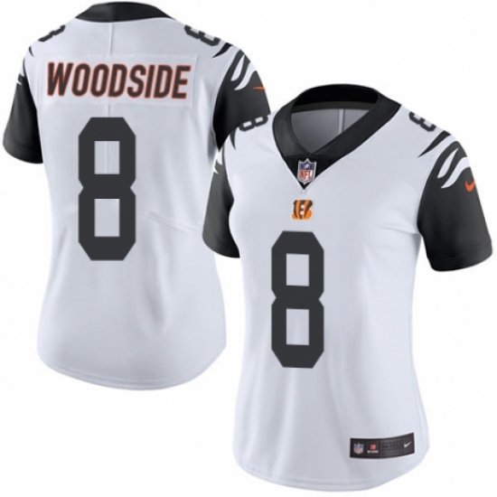 >Women's Nike Cincinnati Bengals #8 Logan Woodside Limited White Rush Vapor Untouchable NFL Jersey