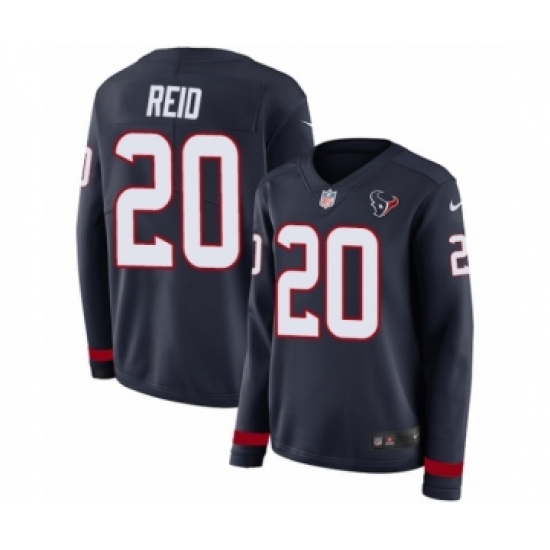 >Women's Nike Houston Texans #20 Justin Reid Limited Navy Blue Therma Long Sleeve NFL Jersey