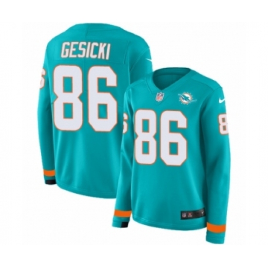 Women's Nike Miami Dolphins #86 Mike Gesicki Limited Aqua Therma Long Sleeve NFL Jersey