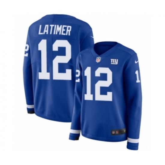 >Women's Nike New York Giants #12 Cody Latimer Limited Royal Blue Therma Long Sleeve NFL Jersey