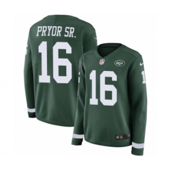 >Women's Nike New York Jets #16 Terrelle Pryor Sr. Limited Green Therma Long Sleeve NFL Jersey