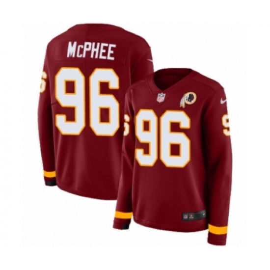 Women's Nike Washington Redskins #96 Pernell McPhee Limited Burgundy Therma Long Sleeve NFL Jersey