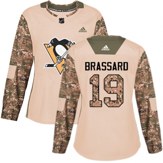 Women's Adidas Pittsburgh Penguins #19 Derick Brassard Authentic Camo Veterans Day Practice NHL Jersey