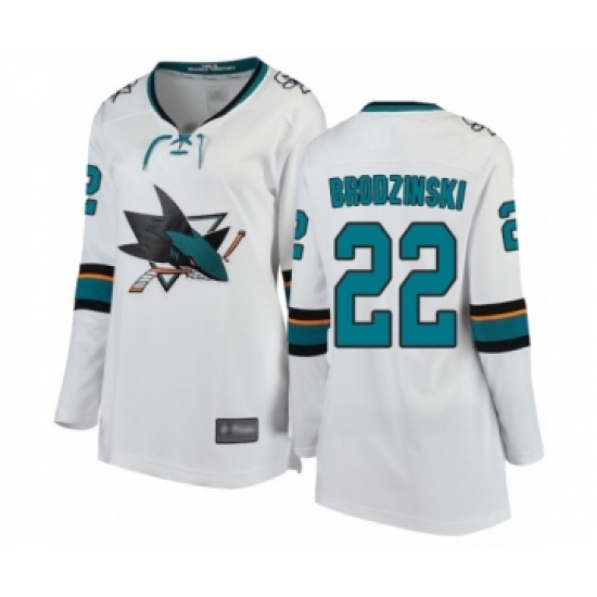 Women's San Jose Sharks #22 Jonny Brodzinski Fanatics Branded White Away Breakaway Hockey Jersey