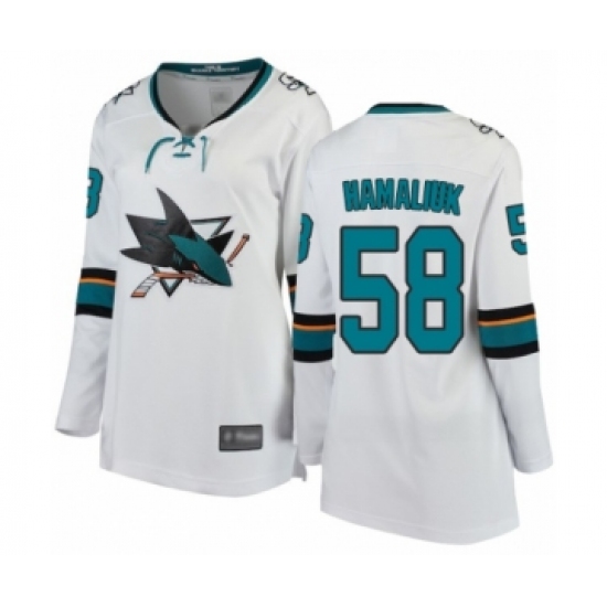 Women's San Jose Sharks #58 Dillon Hamaliuk Fanatics Branded White Away Breakaway Hockey Jersey