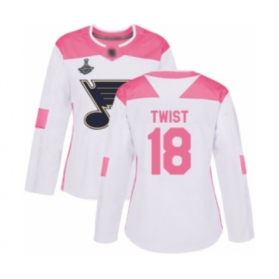 Women's St. Louis Blues #18 Tony Twist Authentic White Pink Fashion 2019 Stanley Cup Champions Hockey Jersey