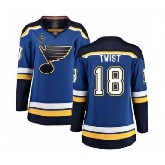 >Women's St. Louis Blues #18 Tony Twist Fanatics Branded Royal Blue Home Breakaway 2019 Stanley Cup Final Bound Hockey Jersey