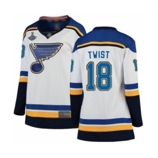 Women's St. Louis Blues #18 Tony Twist Fanatics Branded White Away Breakaway 2019 Stanley Cup Champions Hockey Jersey