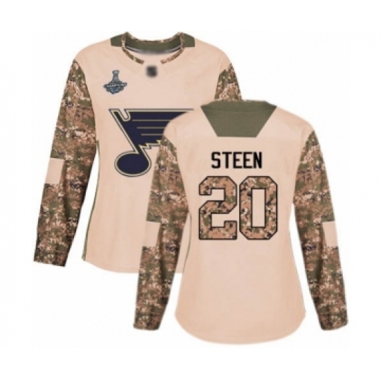 Women's St. Louis Blues #20 Alexander Steen Authentic Camo Veterans Day Practice 2019 Stanley Cup Champions Hockey Jersey