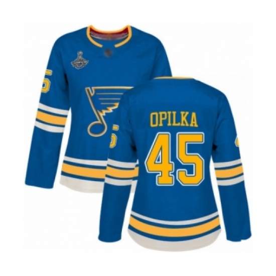 Women's St. Louis Blues #45 Luke Opilka Authentic Navy Blue Alternate 2019 Stanley Cup Champions Hockey Jersey