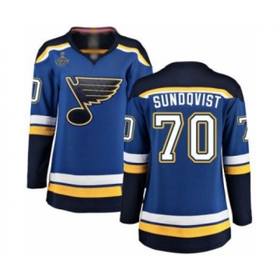 >Women's St. Louis Blues #70 Oskar Sundqvist Fanatics Branded Royal Blue Home Breakaway 2019 Stanley Cup Champions Hockey Jersey