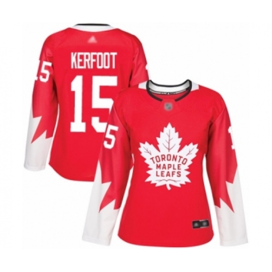 >Women's Toronto Maple Leafs #15 Alexander Kerfoot Authentic Red Alternate Hockey Jersey