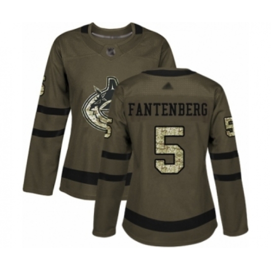 >Women's Vancouver Canucks #5 Oscar Fantenberg Authentic Green Salute to Service Hockey Jersey