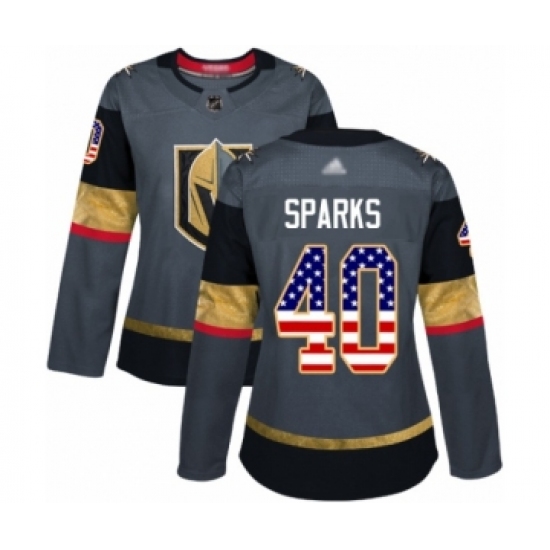 >Women's Vegas Golden Knights #40 Garret Sparks Authentic Gray USA Flag Fashion Hockey Jersey