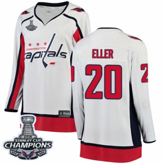 Women's Washington Capitals #20 Lars Eller Fanatics Branded White Away Breakaway 2018 Stanley Cup Final Champions NHL Jersey