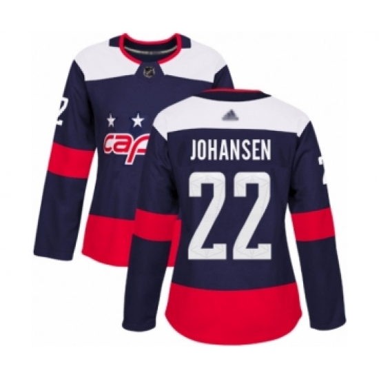 >Women's Washington Capitals #22 Lucas Johansen Authentic Navy Blue 2018 Stadium Series Hockey Jersey