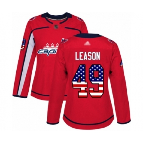 >Women's Washington Capitals #49 Brett Leason Authentic Red USA Flag Fashion Hockey Jersey