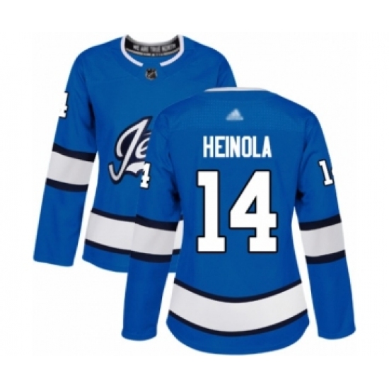 >Women's Winnipeg Jets #14 Ville Heinola Authentic Blue Alternate Hockey Jersey