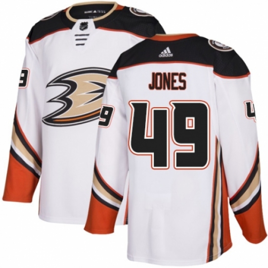 >Youth Adidas Anaheim Ducks #49 Max Jones Authentic White Away NHL Jersey