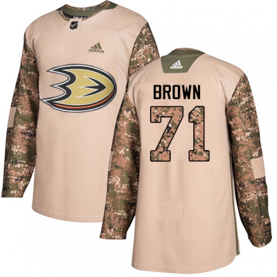 Men's Adidas Anaheim Ducks #71 J.T. Brown Authentic Camo Veterans Day Practice NHL Jersey