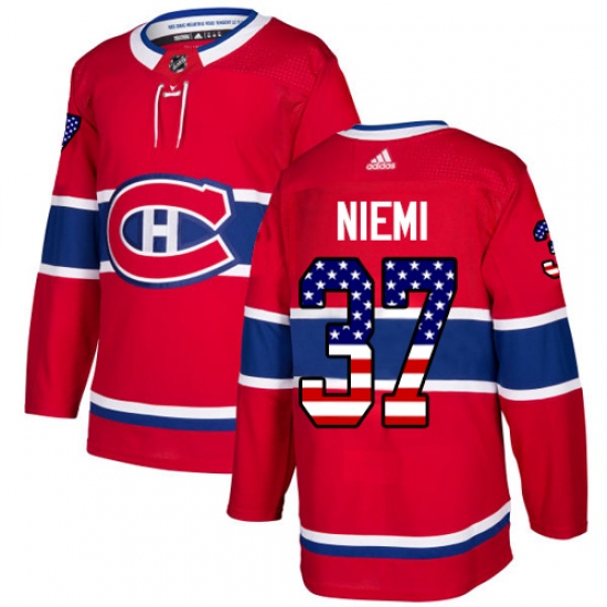 >Youth Adidas Montreal Canadiens #37 Antti Niemi Authentic Red USA Flag Fashion NHL Jersey