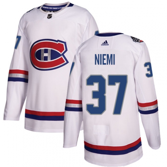 >Youth Adidas Montreal Canadiens #37 Antti Niemi Authentic White 2017 100 Classic NHL Jersey